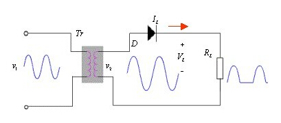 半波整流電路:半波整流就是利用二極管的單向?qū)щ娦阅埽菇?jīng)變壓器出來的電壓Vo只有半個周期可以到達(dá)負(fù)載,如下: